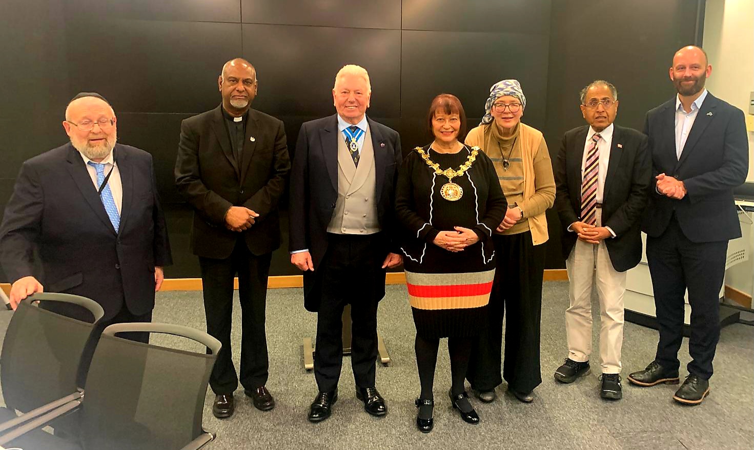 For the third-year running, the location was the Salford Suite at Salford Civic Centre in Swinton. 51 guests attended, including Muslims, Jews, Christians, and people of other faiths and none, which was a near-record attendance. Our Co-Chair, Cllr Heather Fletcher, who is the current Ceremonial Mayor of Salford, was the Master of Ceremonies.