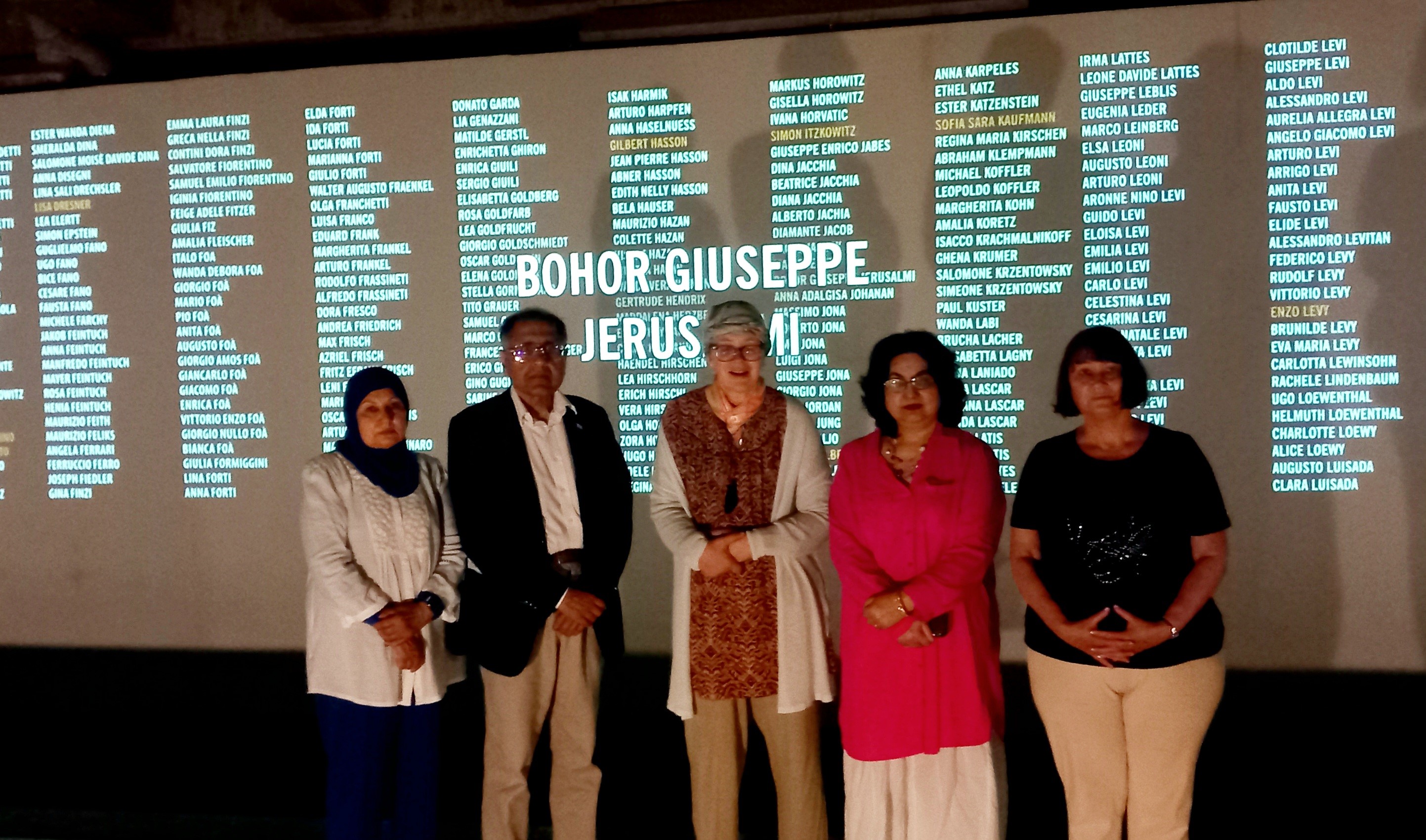 Below you can see the visitors from Manchester at the Holocaust Memorial in front of a projected list of the names of deported Jews who will never be forgotten.